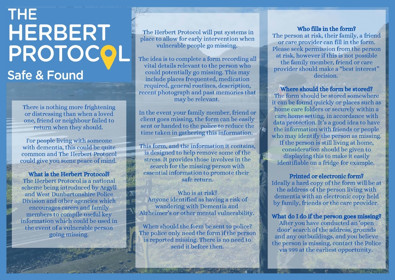 The Herbert Protocol is a nationally recognised scheme supported and endorsed by Police Scotland.